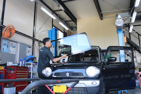 ガラスの上部は 車業界では“修理不可”と案内されやすい難しい位置。