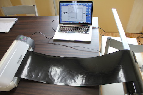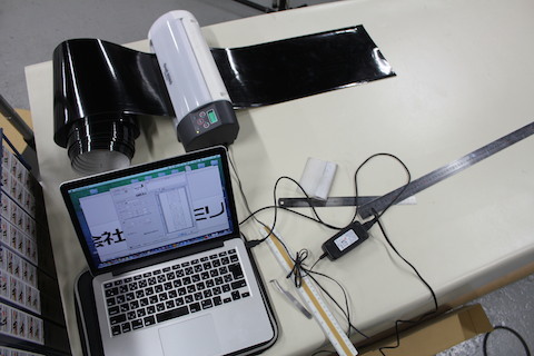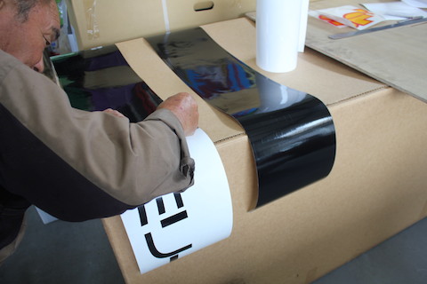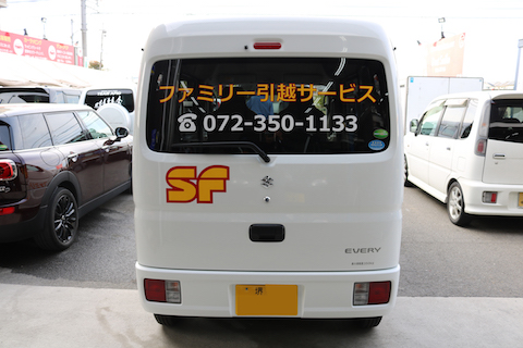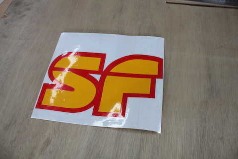 白い下地に会社のロゴと社名のステッカーを貼り付けしました。