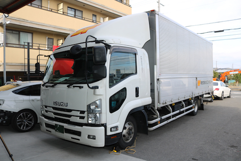 トラックの荷台に社名・ロゴステッカー貼付け