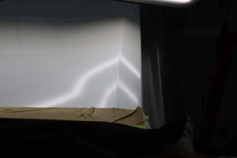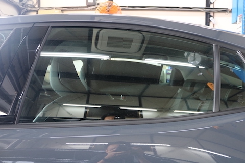 カーフィルムとは、スモークの薄いフィルムをガラスの裏側に貼る技術。