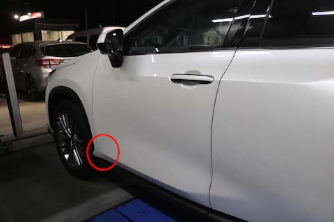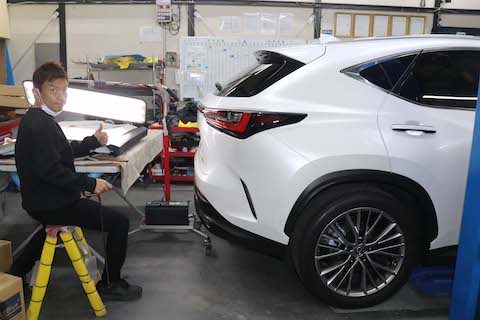 新型 レクサスNXのお客様、ドアにへこみができたとご来店。
