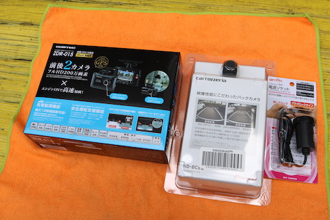 今回ご用意したのが、コムテック ZDR-015の前後ドライブレコーダーと、お客様のカーナビに合うドライブレコーダーをご用意しました、