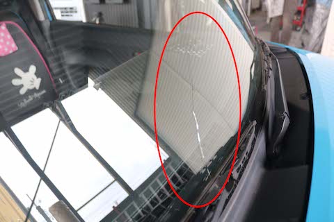 ワイパーの所に飛び石被害で、ヒビが下から上に長く伸びていました。