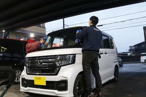 N-BOXのフロントガラスに青色のコートテクト取付!