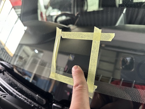 残念ながら、フロントガラス上側に飛び石被害にあい、