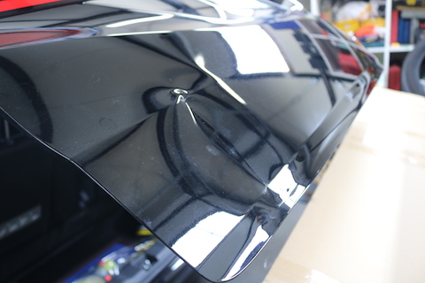 ボンネット一面塗装はもったいないので、こちらはデントリペアという技術でヘコミを押し出せば、