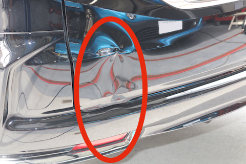 リアゲートとリアバンパー部分を当ててしまい、大きくへこんでしまいました。