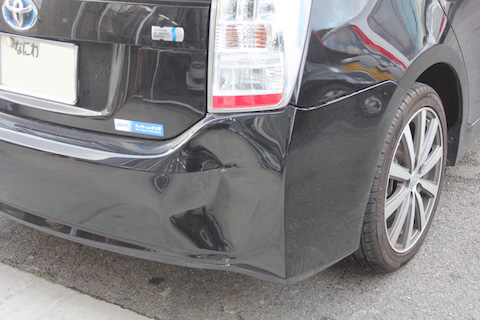大阪市より、プリウスのお客様のリアバンパーが大きくへこんでしまっています・・・