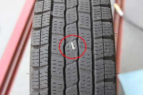 タイヤに刺さっていても、直ぐにタイヤはぺちゃんこになりません。