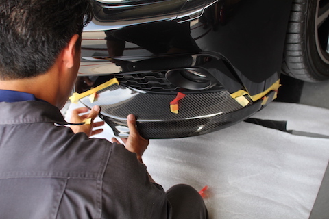 そして、カーボン柄のフロントスポイラーの取付もご依頼頂きました。