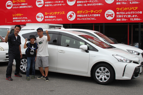 プリウスαのお客様と修理の完成に喜んで頂けました。