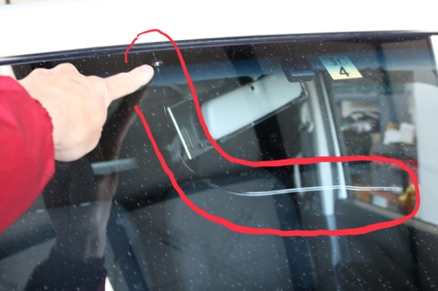 フロントガラス上側に飛び石が当たり、残念ながら傷が伸びて、ガラス交換となってしまいました。