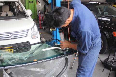 今回も、純正ガラスを使わずに、社外品ガラスを使用しました。