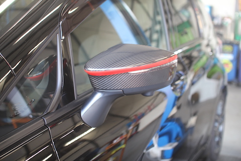 カーラッピングなら、しっかり貼り付きます!周りのレッドに色を合わせました。