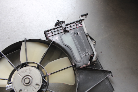 サブタンクは、ラジエターの冷却ファン部分と一体になっているので、ファンごと取り外して、ファンは再利用。