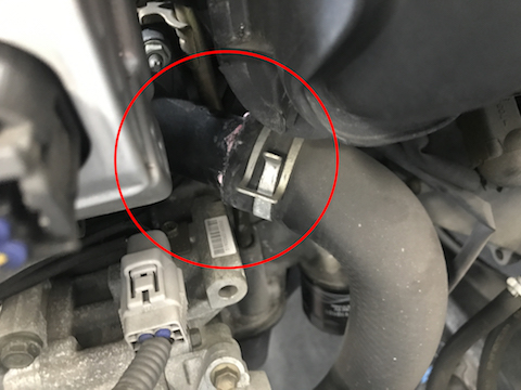 他の場所もチェックすると、冷却水が循環するホースからも漏れを発見!ここもいっしょに交換させてもらいました。
