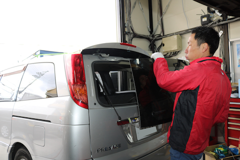 - リアガラス割れを車両保険で修理!カーフィルム施工も全て対応