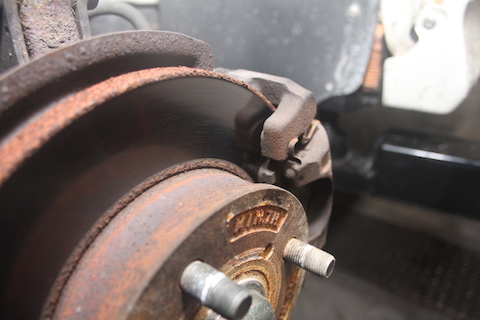 次に、フロントブレーキパット交換。ギリギリ残っていた状態でした。