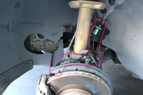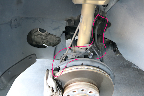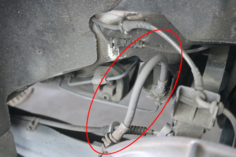 ブロント側のブレーキホースを、