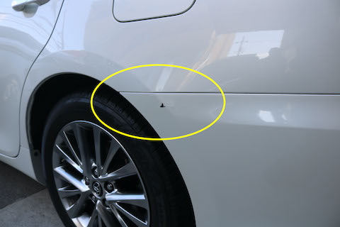 傷口部分を下地処理して、パールホワイトで塗装すれば、