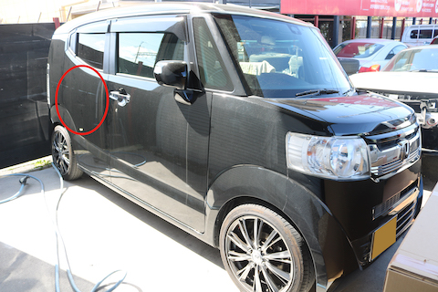 乗り換えたN-BOX / の右後ろドアのへこみにへこみができてしまったとご相談。