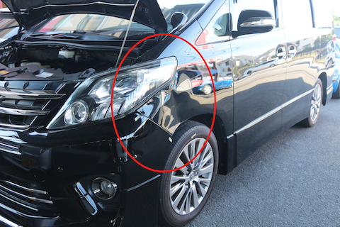 アルファードの左フェンダー、左前タイヤ上部分のパネルですが、
