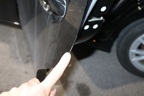 プリウスαのお客様、助手席のドアエッジ部分に傷がついたとご相談。