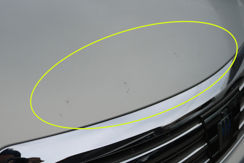 ボンネットに飛び石被害でできたヘコミや傷のお悩みでご来店。