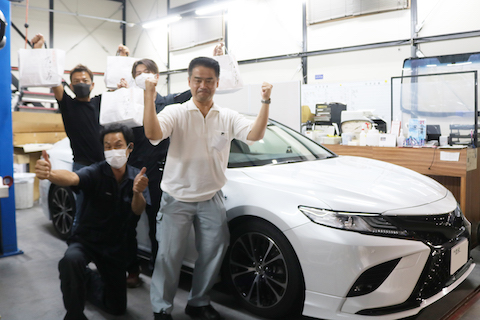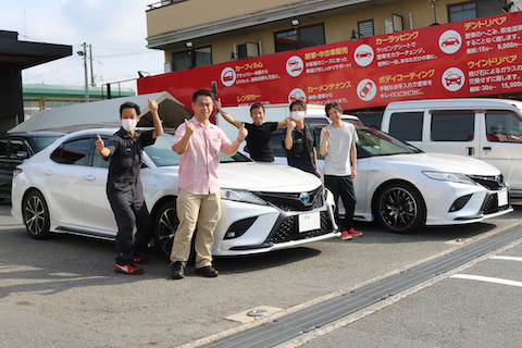 お客様のカムリはパールホワート。
