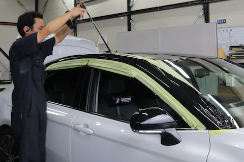 AピラーからCピラーにかけて貼り付けします。