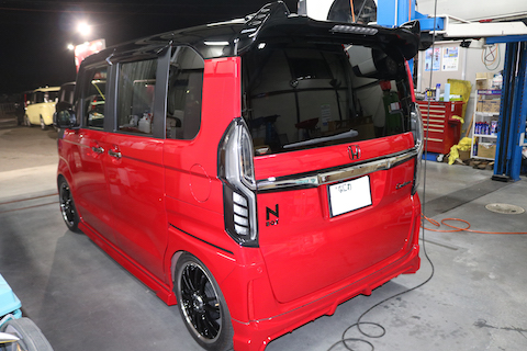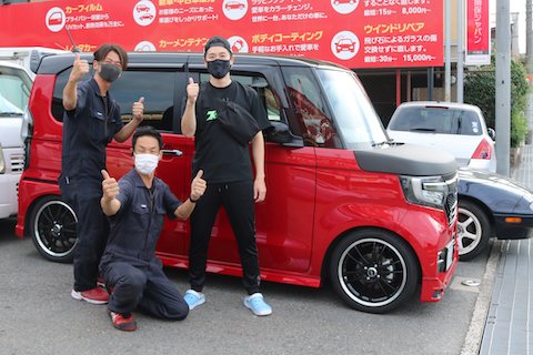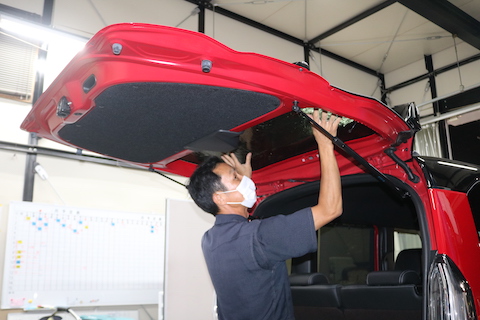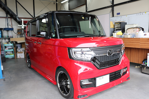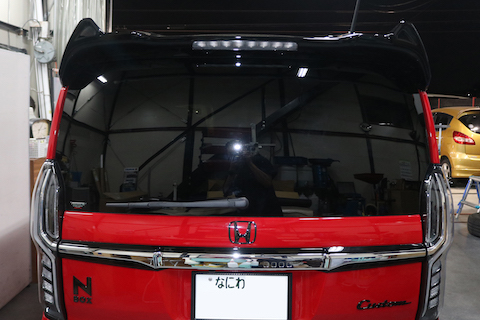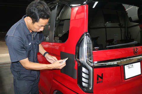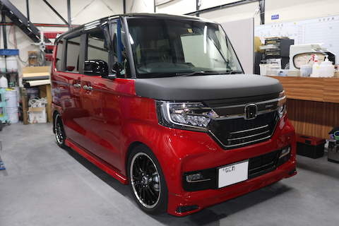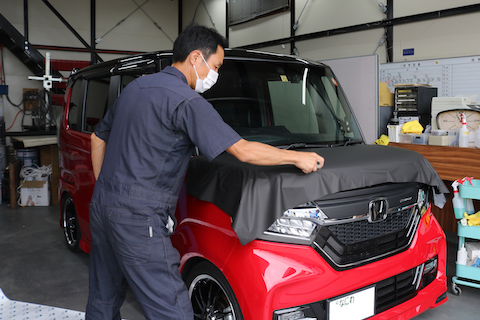 大阪市よりN-BOXのお客様、ボンネットをカーラッピングしたいとご来店。