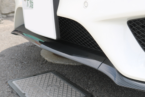 そして、フロントスポイラーとサイドスカート部分も施工。