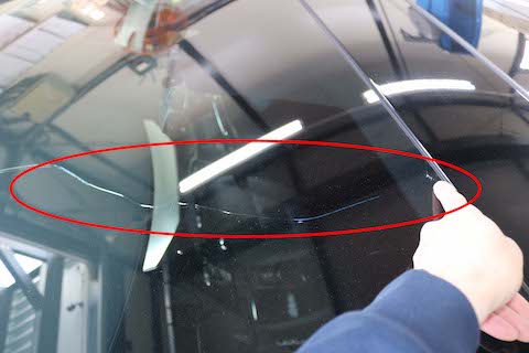 フロントガラス上側の端に飛び石が当たり、すぐにひびが伸びたのでしょう。