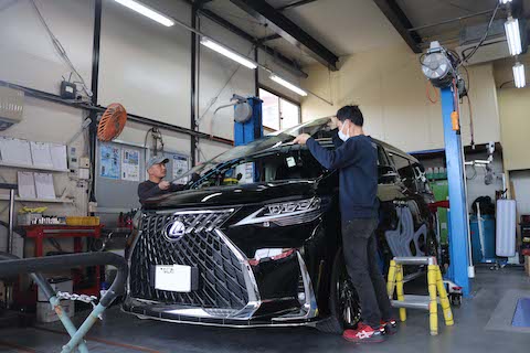 アルファード(LM300)を青色に輝くフロントガラスでカスタム!