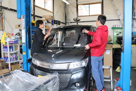 ガラス交換可能なスタッフが数名いてるので、夫婦仲良くフロントガラスを2台同時に交換が可能です!