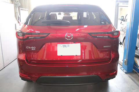 新車のCX-60のお客様、リアエンブレムを交換したいとのご相談。