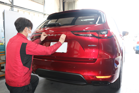 CX-60のリアエンブレムをカスタムでスムージング!