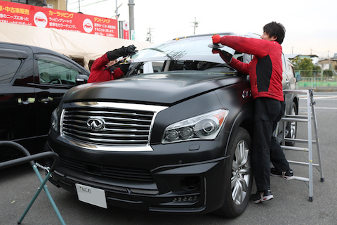 以前、デントスマイルでマットブラックにフルラッピングしたお車、かっこいいですね!