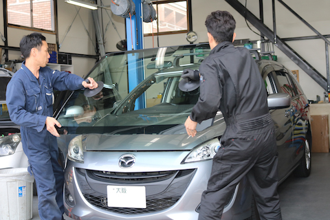 自社施工でフロントガラスを交換して、工賃を最小限におさえ、