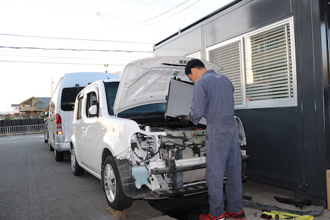 キューブのお客様、エンジンルームから煙が出たとご連絡。
