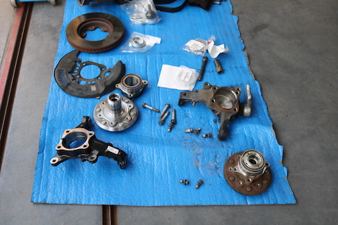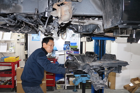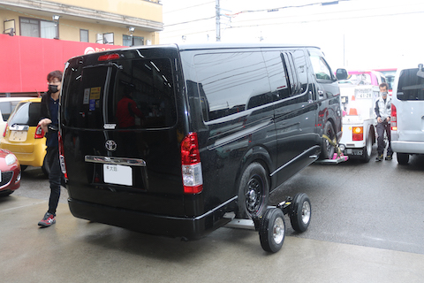 ハイエース足回り損傷、特殊工具で交換・アライメント調整