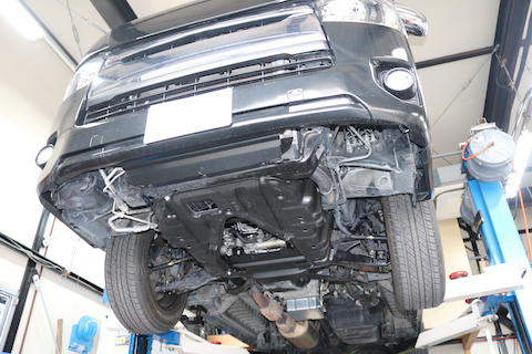 ギリギリで避けたけど、歩道の縁石に乗り上げてしまったと緊急入庫したハイエース。