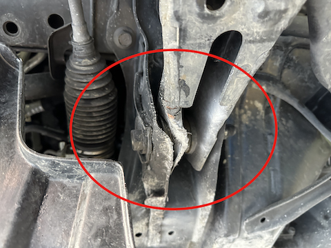 左タイヤあたりもホイールが曲がるほどの損傷もあったので、