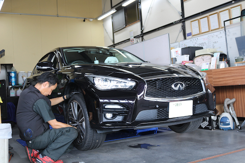 日産 スカイラインのお客様、タイヤ交換のご依頼をいただきました。
