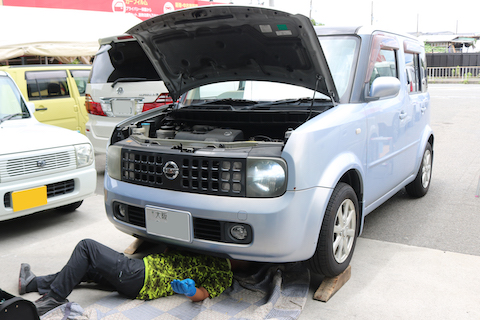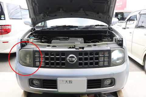 キューブのお客様、ヘッドライト球がつかないとご来店。