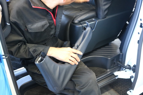 そこで、今回はクラッツィオのシートカバーの取付依頼を頂きました!肘掛けなどをバラして、シートの隅々を包みます。そして、ピッタリ設計のカバーなので、取付に工夫も必要で、なかなかDIYでの施工が難しいですね。
