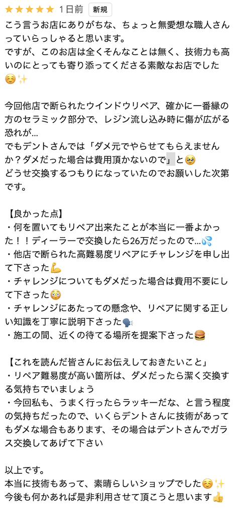 是非、デントリペアとウインドリペアの施工例もご覧下さい。
