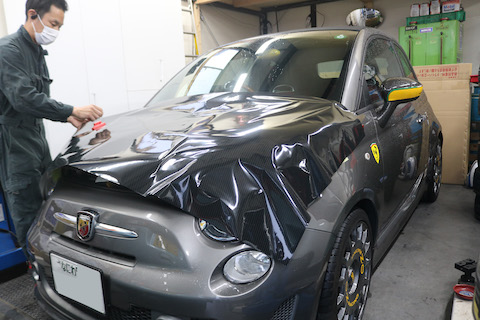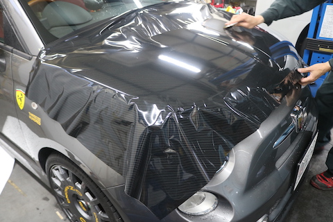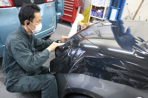 板金・塗装で浮いた修理代でボンネットをカーラッピングで、
