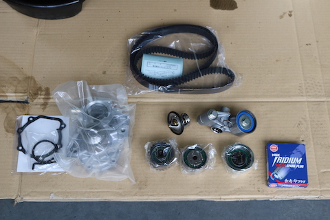 10万キロ毎にタイミングベルト交換ですが、同時交換をオススメする部品がたくさんあります。