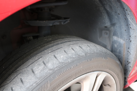 タイヤは見ての通り、溝も薄くなっていますね。